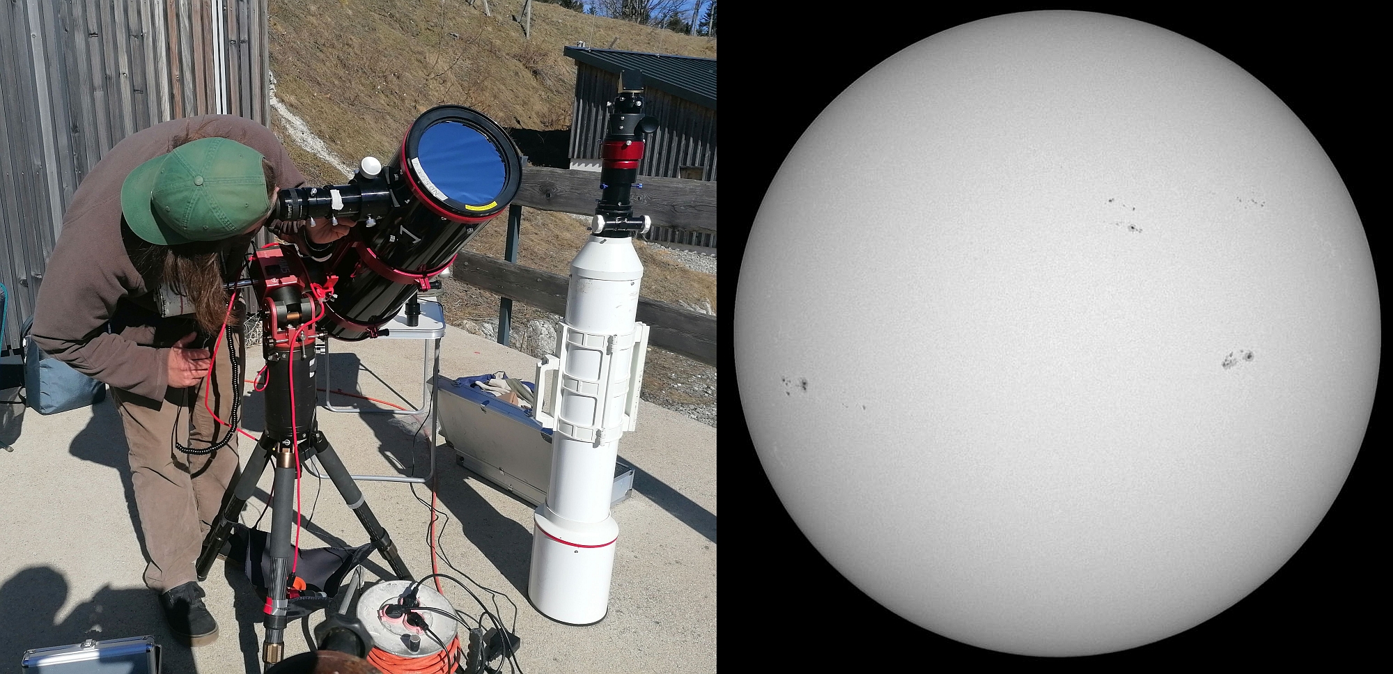 Sonnenbeobachtung im Weißlicht mit mobilen Geräten auf der Terasse der Sternwarte Hohe Dirn - Foto:Dominik Pichler