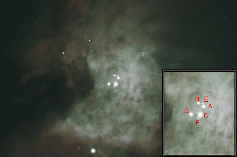 die Auflösung ermöglicht und zeigen 6 Sterne des Trapetz (A-F)
