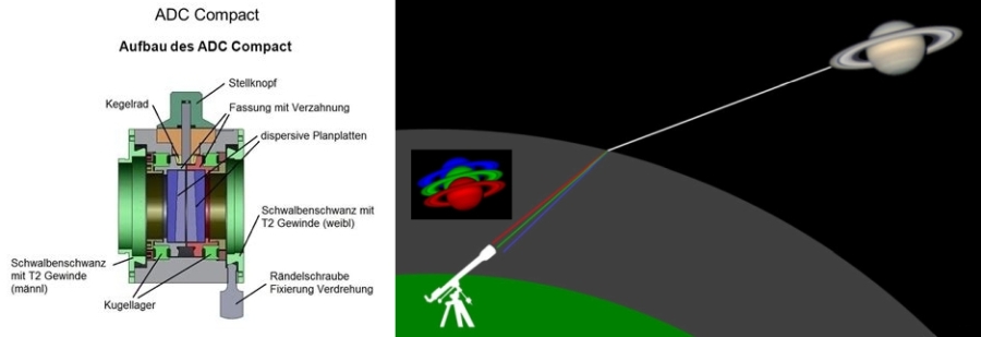 eigenen Farbfehler, welcher der atmosphärischen Dispersion entgegengerichtet ist. Das ADC korrigiert so diesen störenden