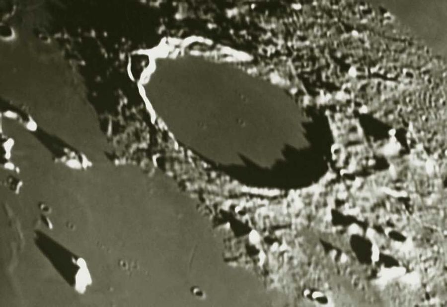 Die am Laptop abgefilmte Sequenz zeigt den Mondkrater Plato und das Alpental bei sehr ruhigen Luftverhältnissen.