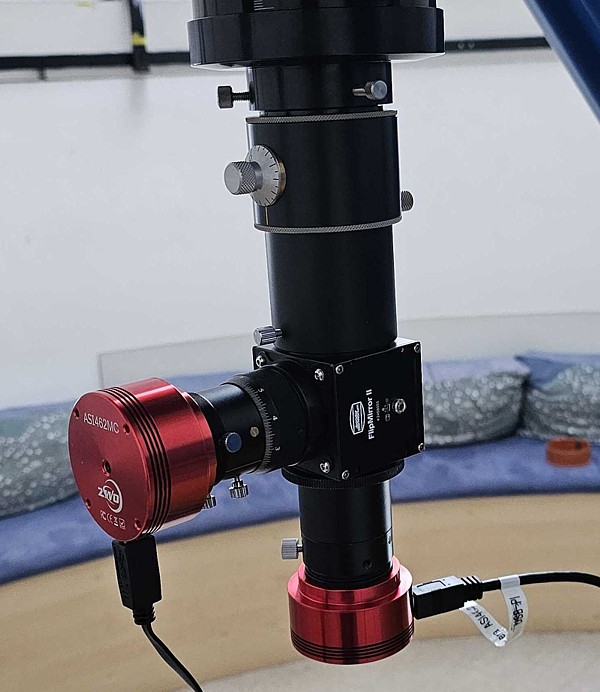 dies ein altes, aus den 70er Jahren stammendes Celestron 14, dessen Brennweite durch eine Zusatzoptik auf f/1.9 von Vereinsmitgliedern