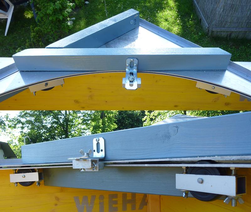 Der Drehkranz wird mit 4 Zentrierollen zentrisch gehalten.