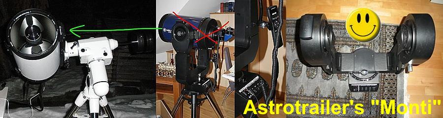 Möglich wurde das für mich, weil Günther sein 10" LX200 auf eine deutsche Montierung umgerüstet hat und ich dadurch zu einer voll computergesteuerten GOTO Gabelmontierung mit GPS gekommen bin, wie ich sie im Handel so kaum angeboten bekommen hätte. Günther hat sie mir zu einem sehr freundschaftlichen "ASTROTRAILER-Unterstützerpreis" überlassen :-)