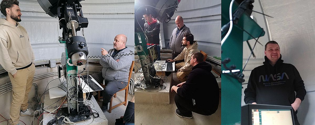 Nedim(links) und Damian(rechts) unsere Astrofotospezialisten beim Kennenlernen des Equipments und der Kuppelsteuerung.