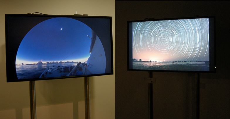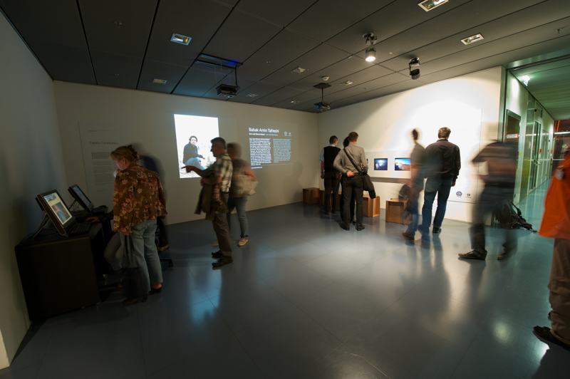 Above you can see on the left side two online-terminals where people can visit TWAN and AWB-website. In the middle of the room is the presentation of all TWAN-photographers and on the right side there are the 5 screens showing the "Making Of" - video where visitors can learn more about TWAN, it's aims, it's educational aspect and about producing TWAN-pictures.