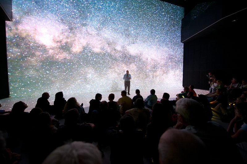 Prof. David Malin in Deep Space is talking to the audience about the beauty and colour of the starry nightsky.