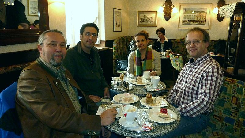 Lajos lädt zu einer Kaffee- und Kuchenpause ein.