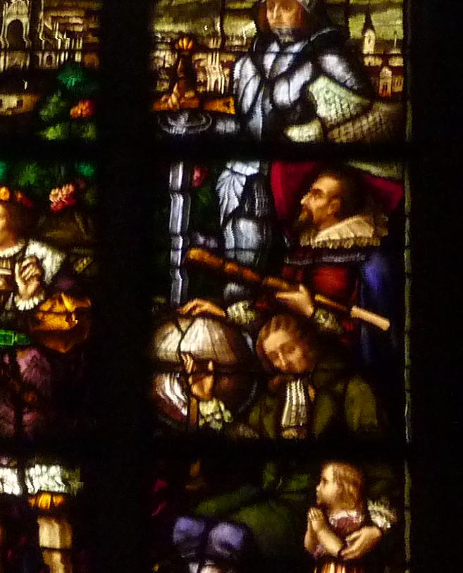 Rechts ein Ausschnitt aus dem alten Fenster mit Johannes Kepler
