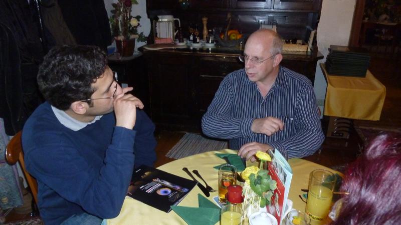 Erwin Filimon zeigt Babak stolz die fotografischen Ergebnisse der AAS-Mitglieder