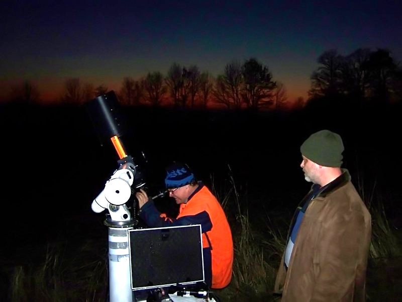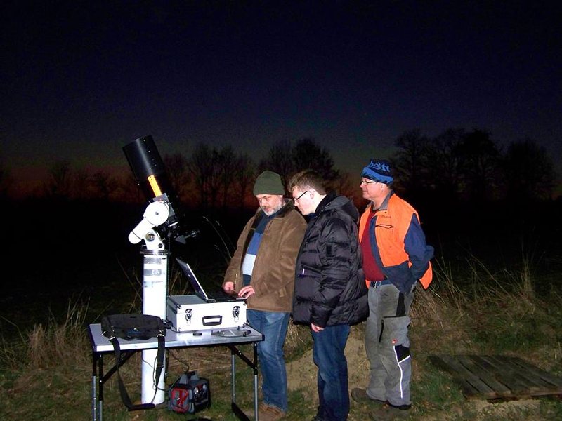 Die moderne Technik (GPS-Handys) hat auch auf der Außenstelle zum Auffinden von Objekten am Dämmerungshimmel Einzug gefunden.....