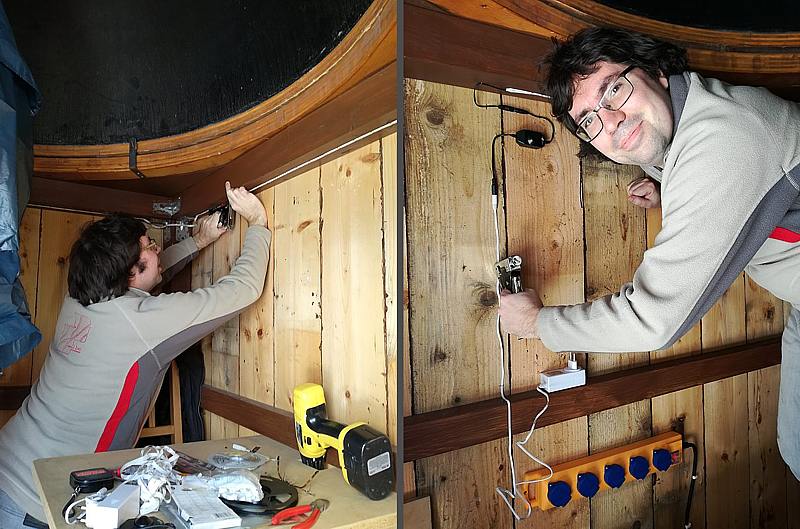 Markus beim Installieren einer dimmbaren LED Lichterkette - diese gibt eine perfekte Sternwartebeleuchtung ab.