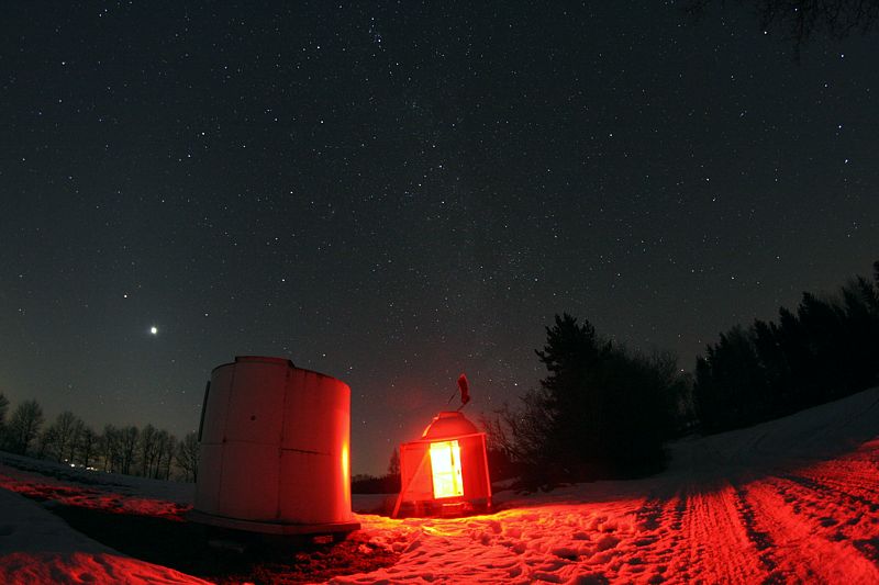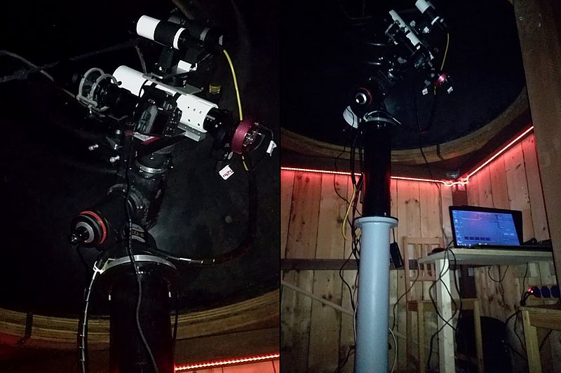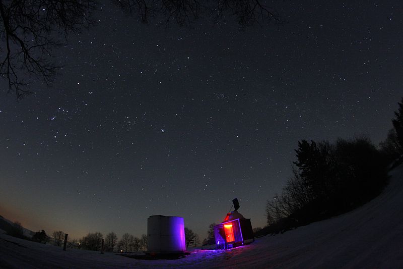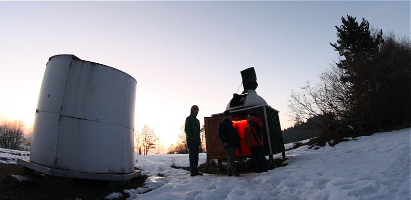 Die ersten Tests sind sehr zufriedenstellend verlaufen. Die Kuppel ist nicht eingefroren und ließ sich leicht drehen. Der Spaltdeckel ist jedoch gewöhnungsbedürftig und stärkerem Wind sollte er besser nicht ausgesetzt werden. Hier werden wir in der wärmeren Jahreszeit über eine Verbesserung nachdenken.