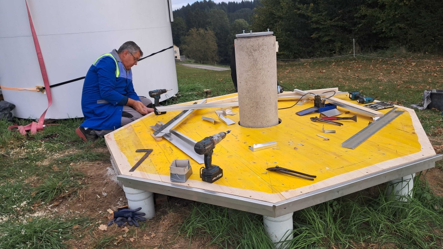 Der Boden der Drehtrommel und das Fundament wurden komplett erneuert und die wegen der damaligen Celstron-Gabelmontierung nach Süden