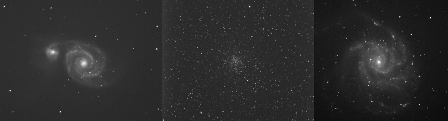 Obige erste C14 DeepSky Test-Aufnahmen in Gramastetten von Dominik mit voller Brennweite (unguided 120sec Aufnahmen)