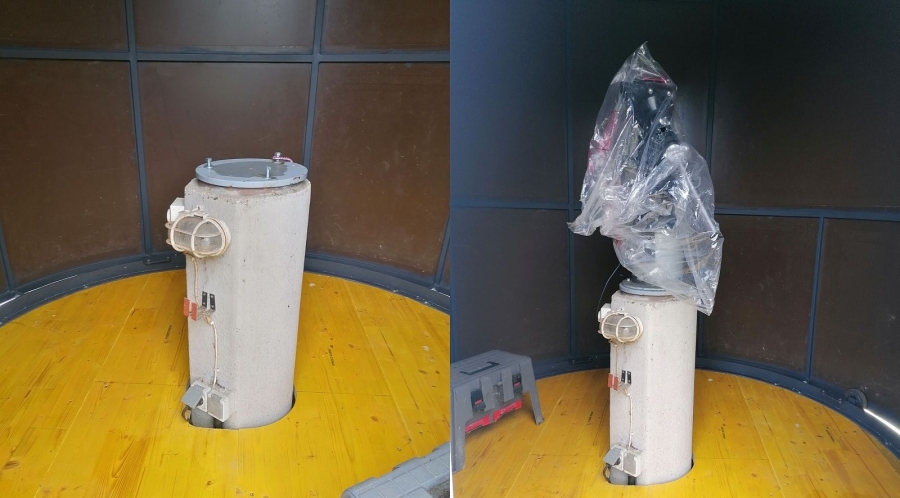 versetzte Teleskopsäule für die deutsche Montierung ins Zentrum des Gebäudes versetzt.