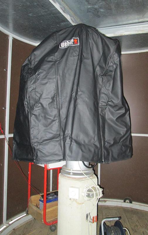 Seit wir Probleme mit Flugschnee bzw. Regen bei Starkwind hatten, haben wir unser Teleskop entsprechend wasserdicht abgedeckt ......