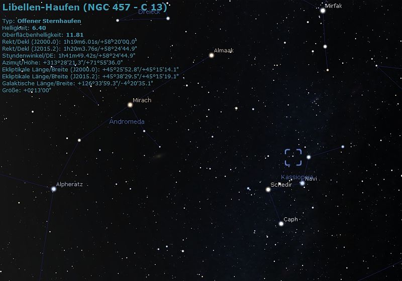 NGC457 - oder auch "ET-Cluster" (bzw. im deutschsprachigen Raum "Eulenhaufen" oder auch "Libellenhaufen" ) genannt.