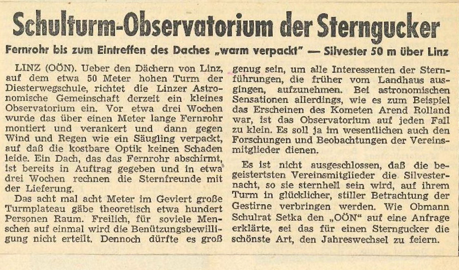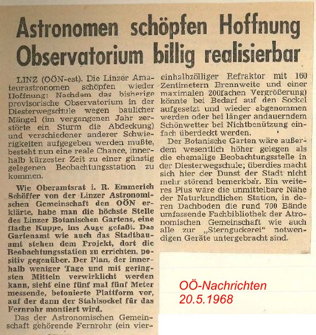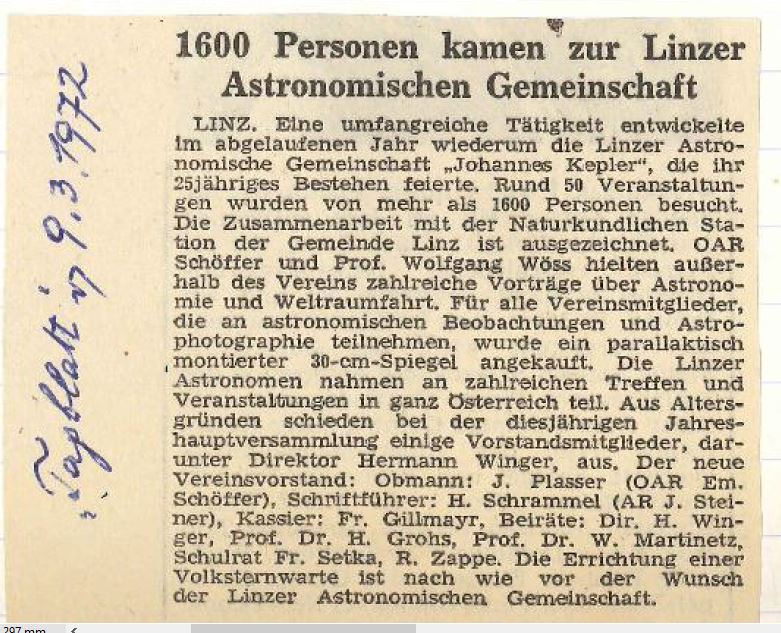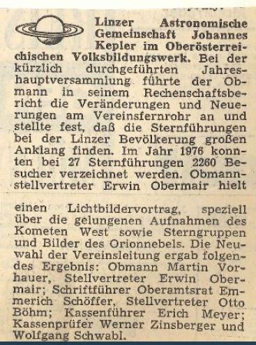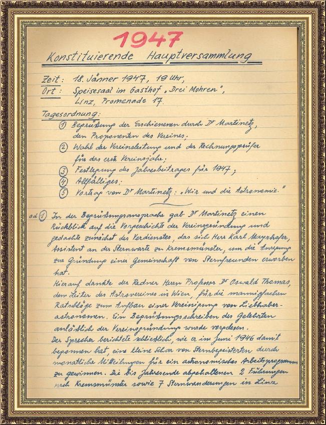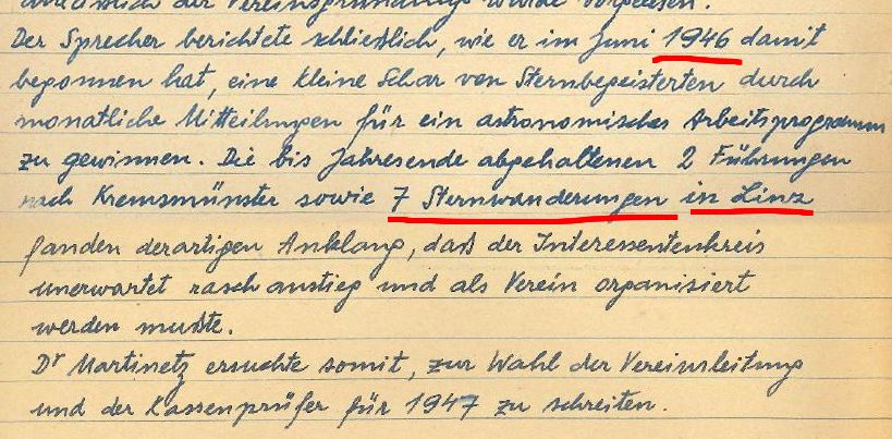 ..... hat eine lange Tradition und reicht bis ins Jahr 1946 zurück, diese Tatsache findet man in der Vereinschronik 1947 der Linzer Astronomischen Gemeinschaft im Bericht über die konstituierende Hauptversammlung am 18. Jänner 1947.