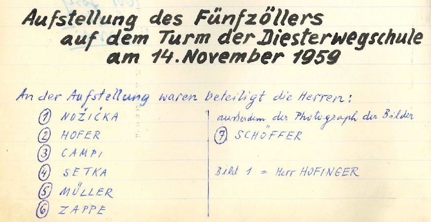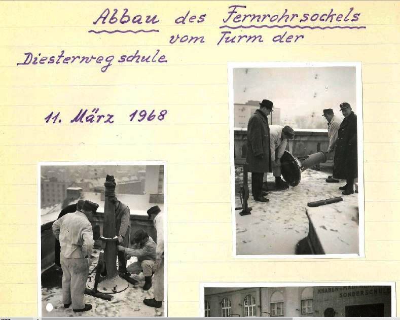 Die nächste Anschaffung war der 5 Zöllige Refraktor, der seinen ersten Platz auf dem Turmdach der Diesterwegschule fand.
