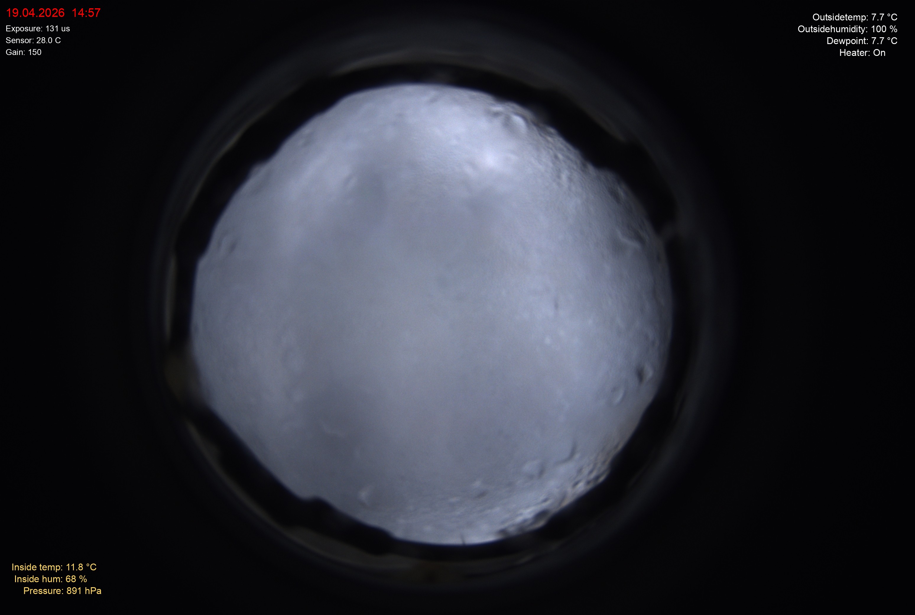 Die AllSky Kamera liefert rund um die Uhr (24/7) Einzelbilder des sichtbaren Himmels über dem Starpark Hohe Dirn.
