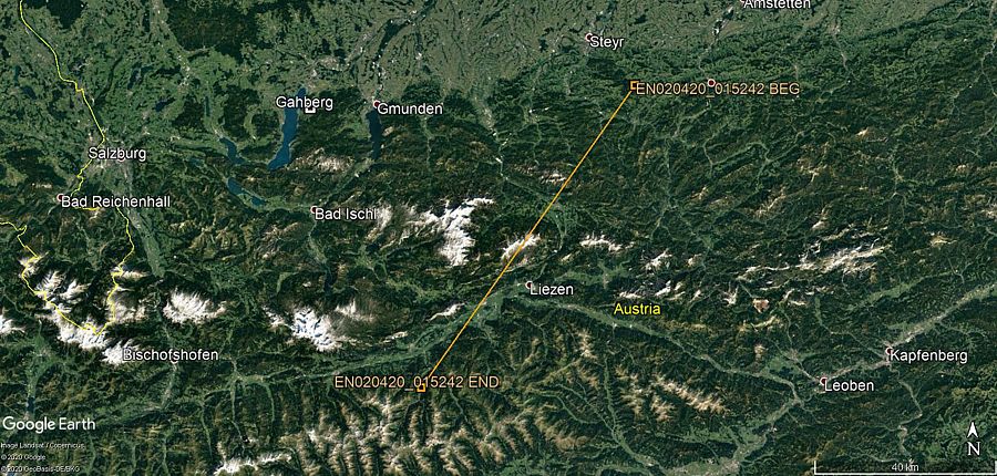 Während des Testbetriebs in seinem Garten wurde auch der Meteor vom 2.4.2020 über Linz eingefangen und die Daten zur Auswertung weitergeleitet.